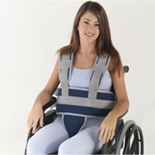 A páciens kényelmes rögzítését szolgálja kerekesszékben. Megfelelő stabilitást nyújt. Meggátolja az oldalirányú elmozdulást és a lecsúszást. A has előtt egy 40×12 cm nagyságú anyagrész van, amely a beteg mellett és mögött autó biztonsági övszerű megfelelő pántban folytatódik. Ennek hossza állítható és a két oldal gyorskioldású műanyag csattal rögzül. A láb között egy 30×6 cm nagyságú anyagrész van, amely a beteg derék részénél az autó biztonsági övnek megfelelő pántokban (2 db) folytatódik. Ennek is a hossza állítható és szintén a két oldal gyorskioldású műanyag csattal rögzül.