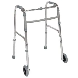 A járókeret elején lévő 2 db műanyag kerék a továbbítást és a haladást könnyíti meg, míg gumivégek a biztonságos támaszkodást segítik elő.