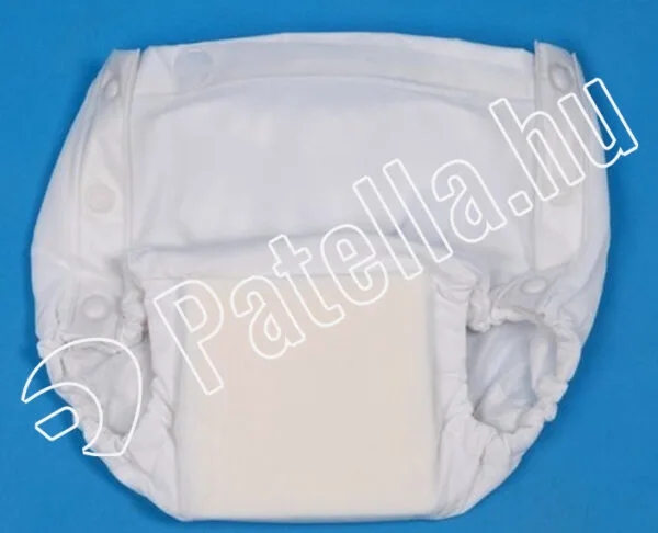 Műanyag, oldalt kapcsokkal záródó pelenkázónadrág textilpelenkához.