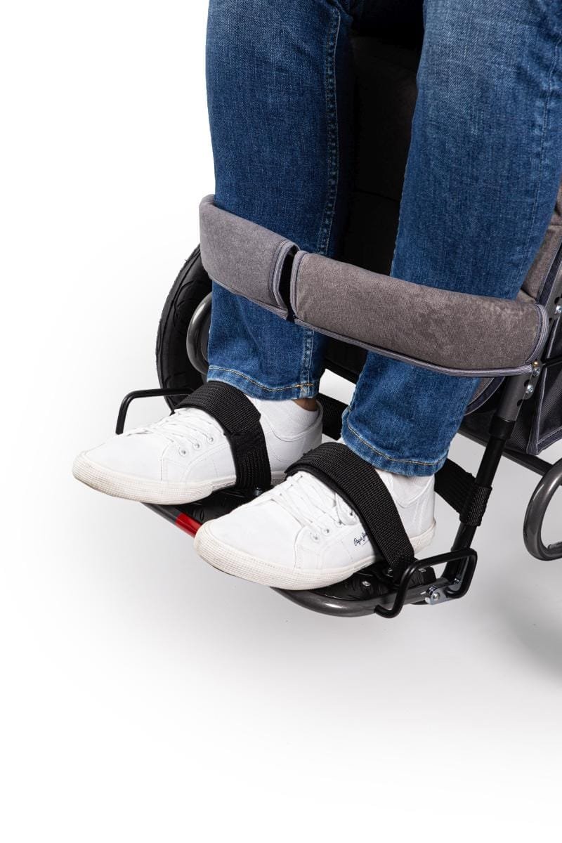 A méret könnyedén a speciális kerekesszékben az ülő személy méretéhez igazítható, a kárpitozott felületű pánt pedig kényelmes használatot biztosít.