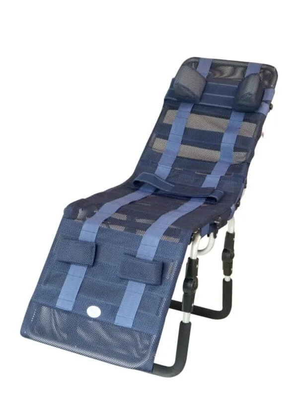 Számos alapvető biztonsági funkció, mint például az állítható stabilizáló fejtámla, a törzsstabilizáló öv és a lábstabilizáló övek nagymértékben elősegítik a felhasználó biztonságát a fürdőzés közben. A fürdetőszék támasztólábai habszivaccsal burkoltak, így nyújtva biztos fogást, és ezáltal védve a felületeket a karcolásoktól.