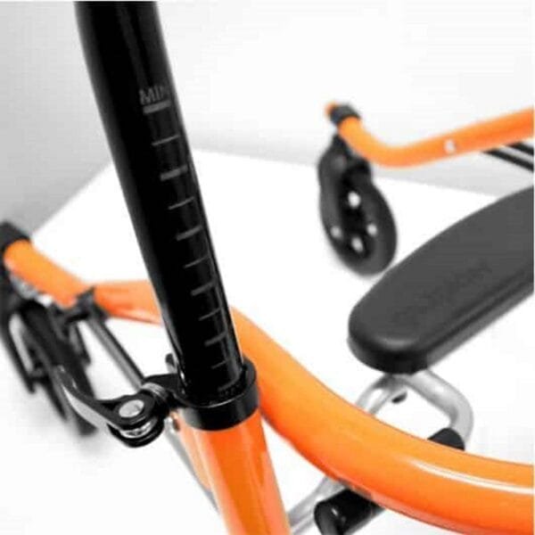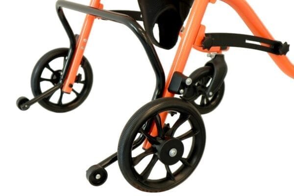 A Járássegítő funkcionális első kerekekkel rendelkezik a menetirány rögzítésének lehetőségével, a hátsó kerekek pedig hátra gurulás gátlóval felszereltek. Az a gyógyászati segédeszköz rendelkezik egy lassítóval a hátsó kerekeken, amely szabályozza a járássegítő sebességét. Ez a felszereltség nagymértékben segíti a gyenge motorikus képességekkel rendelkező és a kezdő felhasználókat.