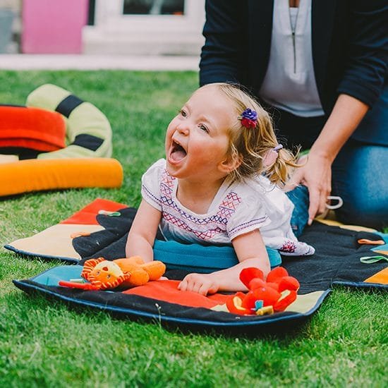 A Playpak segítségével a gyermek három pozícióban tud játszani, fejlődni: háton fekvésben, hason fekvésben és a szőnyegen ülve.