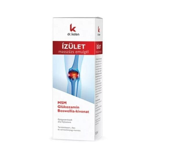 A Dr.Kelen Ízület emulgélt ízületi- és izomfájdalom esetén masszírozza a bőrbe. A készítménnyel végzett önmasszázs enyhülést nyújt. Meghatározó aktív anyagai az ismert MSM, Glükozamin és Boswelliakivonat. Az ízületi fájdalom, gyulladás gyakran vezethető vissza túlzott izomfeszülésre, sport okozta túlterhelésre vagy porckopásra. A rendszeresen, megfelelő géllel végzett, szakszerű masszázs, gyógytorna segítheti a probléma mérséklését és a mobilitás visszanyerését.