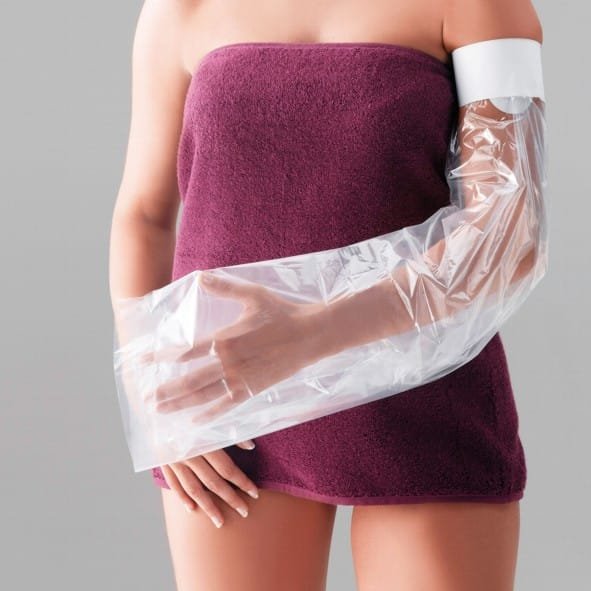 – kényelmes védőtasak, egyszerűen fel kell húzni a karra a gipsz, vagy kötés fölé, és ez által nyugodtan fürödhetünk, vagy zuhanyozhatunk